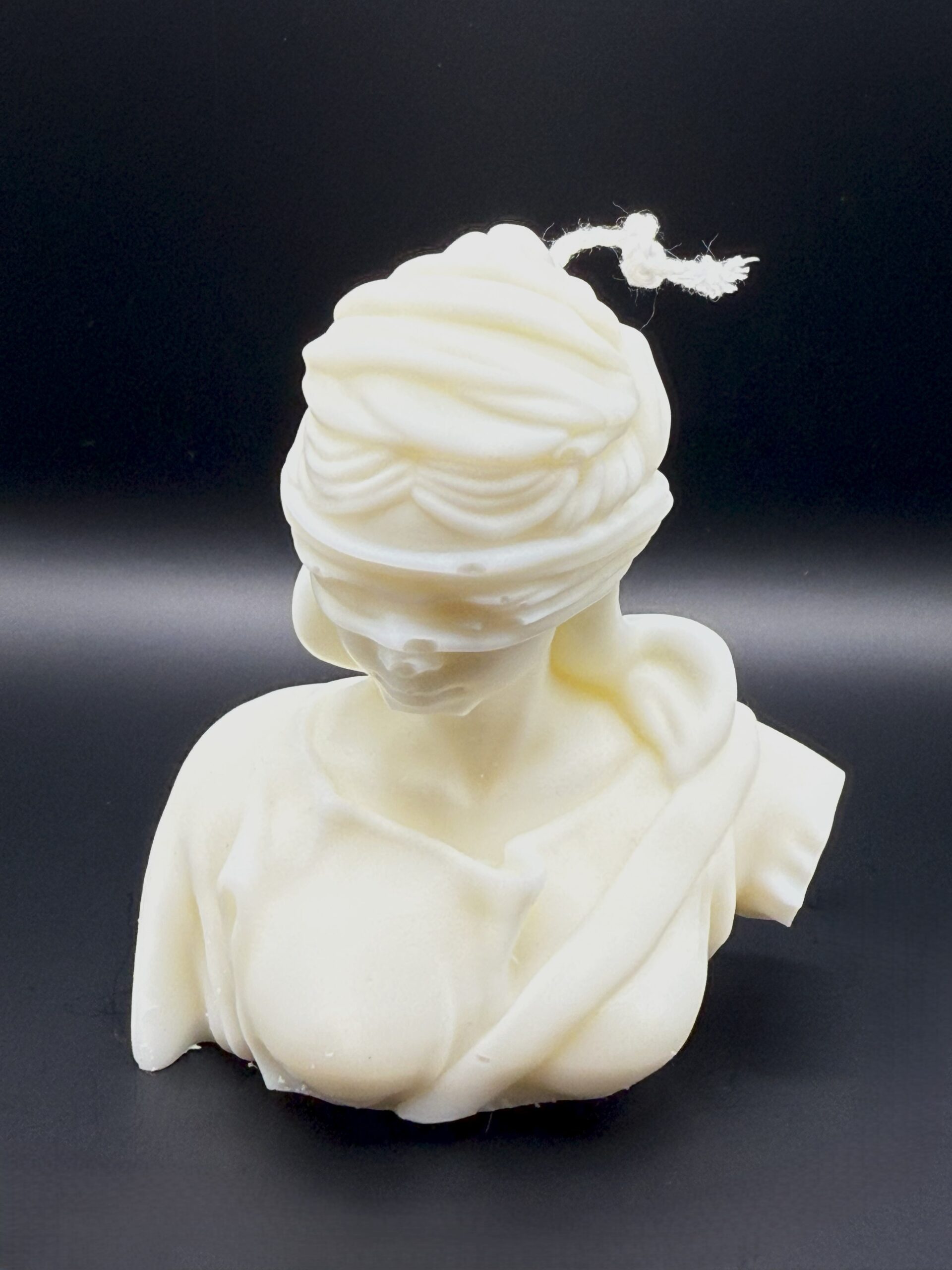 Ez a különleges szobor gyertya egy harcos nő alakját formázza, akinek arcát kendő takarja – emlékeztetve arra, hogy az igazi erő belülről fakad.